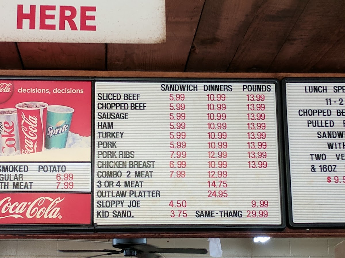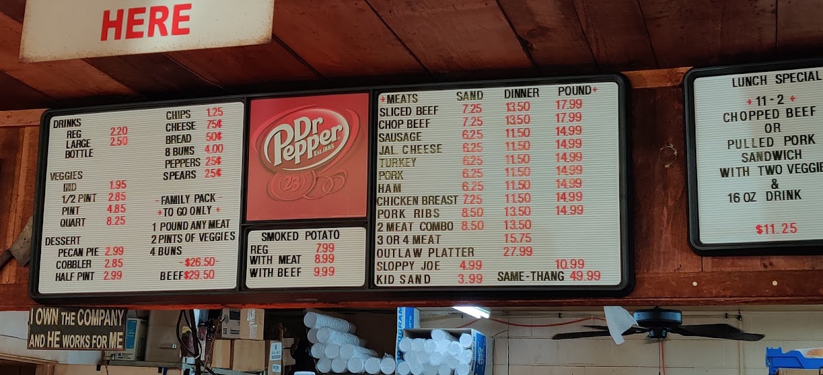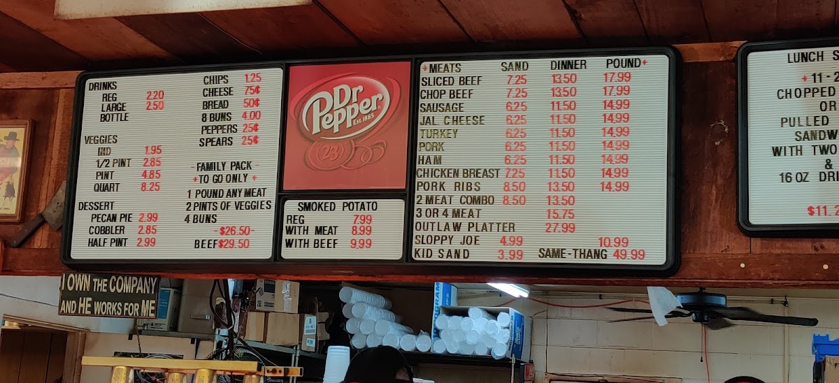 Welcome to Outlaw's Bar-B-Que, a culinary gem nestled in the heart of Mt Pleasant, Texas. Located conveniently at 100 W Ferguson Rd, this establishment has earned a reputation as a go-to destination for BBQ enthusiasts. With a commitment to quality and customer service, Outlaw's Bar-B-Que offers an experience that goes beyond just a meal; it’s a feast for the senses.